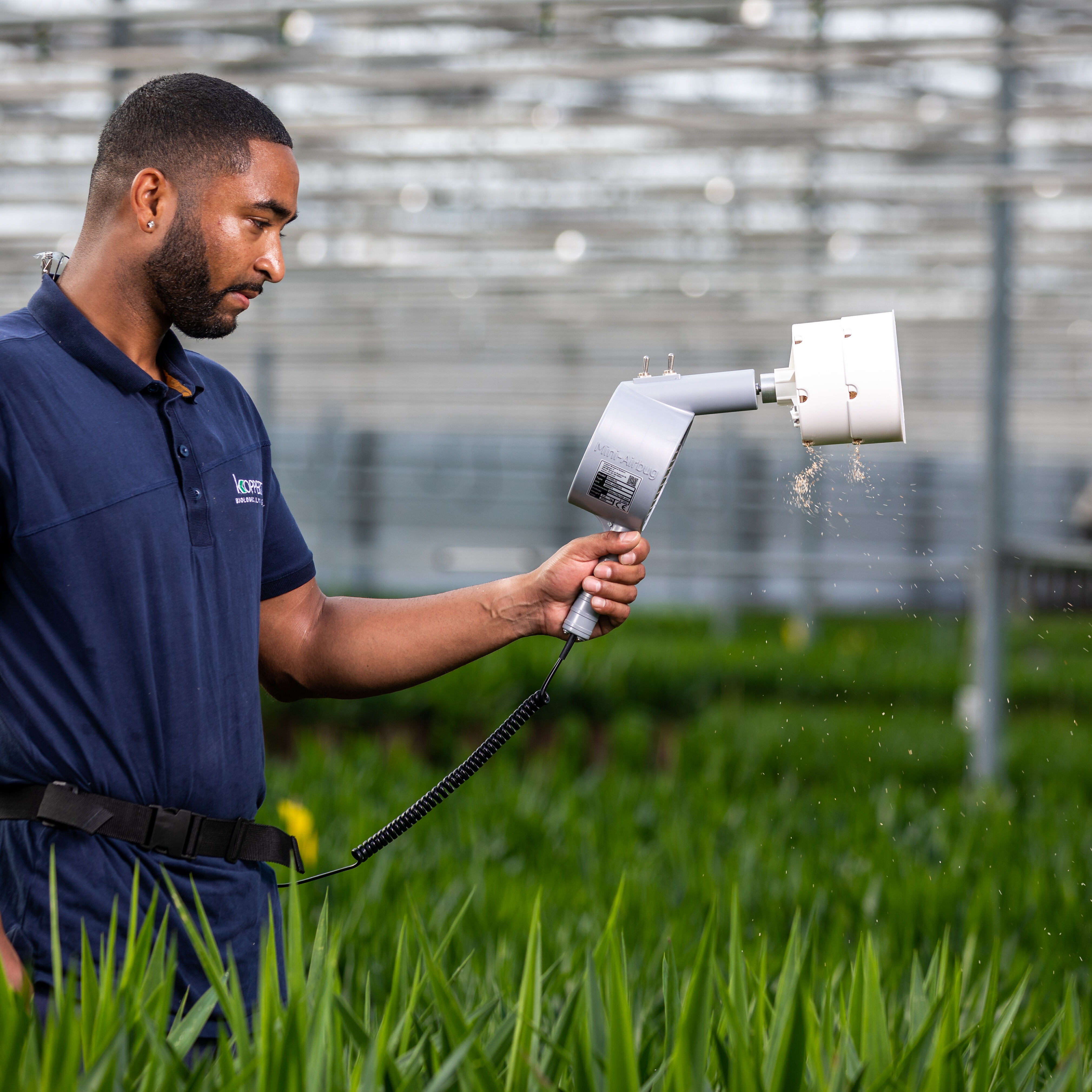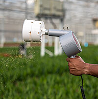 Use el Natutec Mini Airbug para distribuir enemigos naturales en el cultivo. El Mini-Airbug se puede utilizar para distribuciones sobre todo el terreno o para tratamientos localizados específicos, así como para la distribución de Artefeed y Entofood.