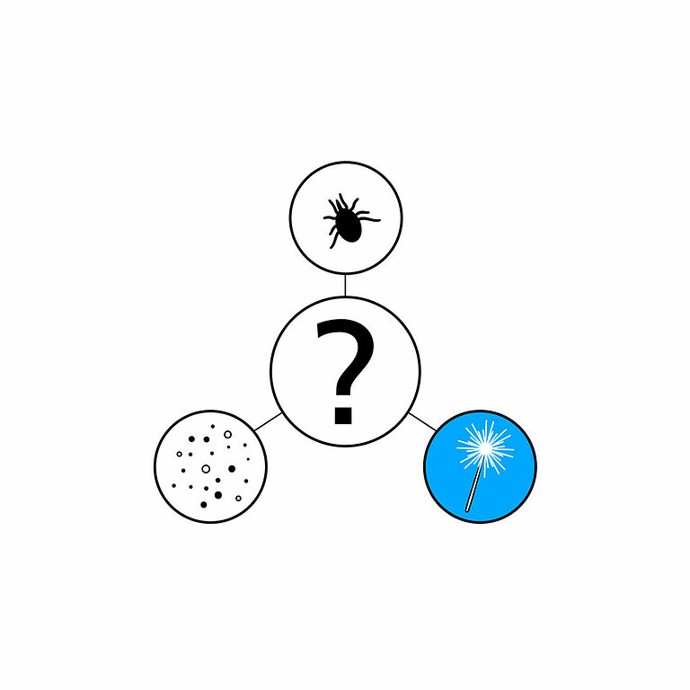 En la práctica es difícil determinar qué sustancia causa una reacción alérgica. Una alergia también puede ser causada por otros desencadenantes o una combinación de estos en su entorno (polen, salvado u otras sustancias volátiles). Para determina a qué sustancia es alérgico, se precisa realizar un test de alergia.