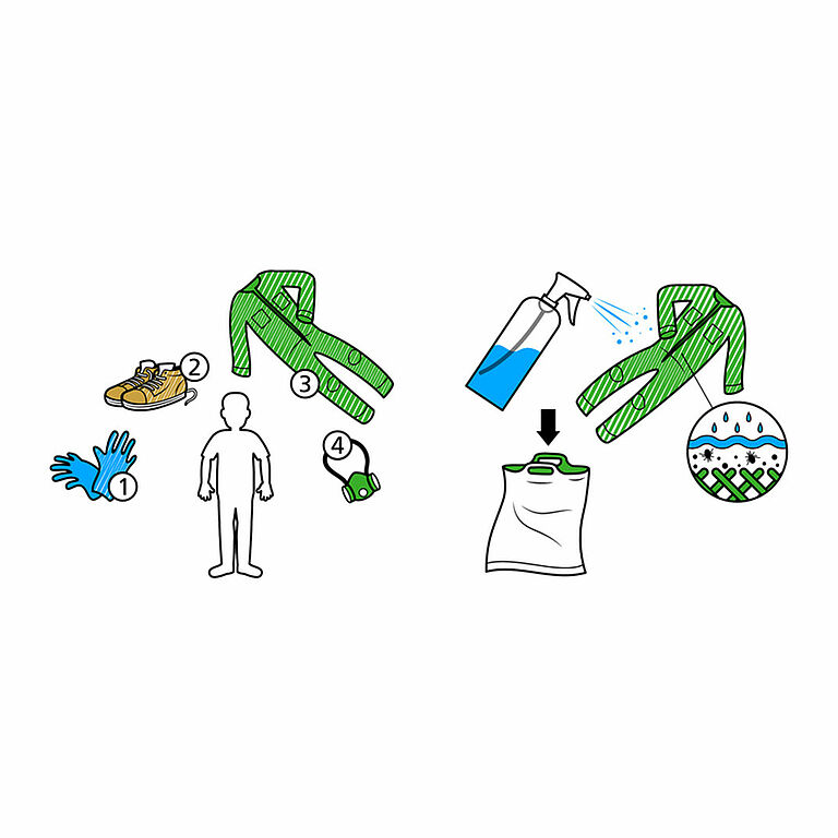 Prevenga la exposición cutánea utilizando ropa protectora que cubra los brazos y las piernas.