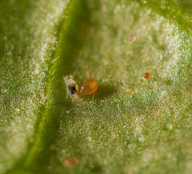 El ácaro depredador Neoseiulus californicus también está disponible en sobres de cría (Spical-Plus, Spical Ulti-Ácaro). En este caso, los ácaros depredadores se multiplican en el sobre y se dispersan por los cultivos durante varias semanas.