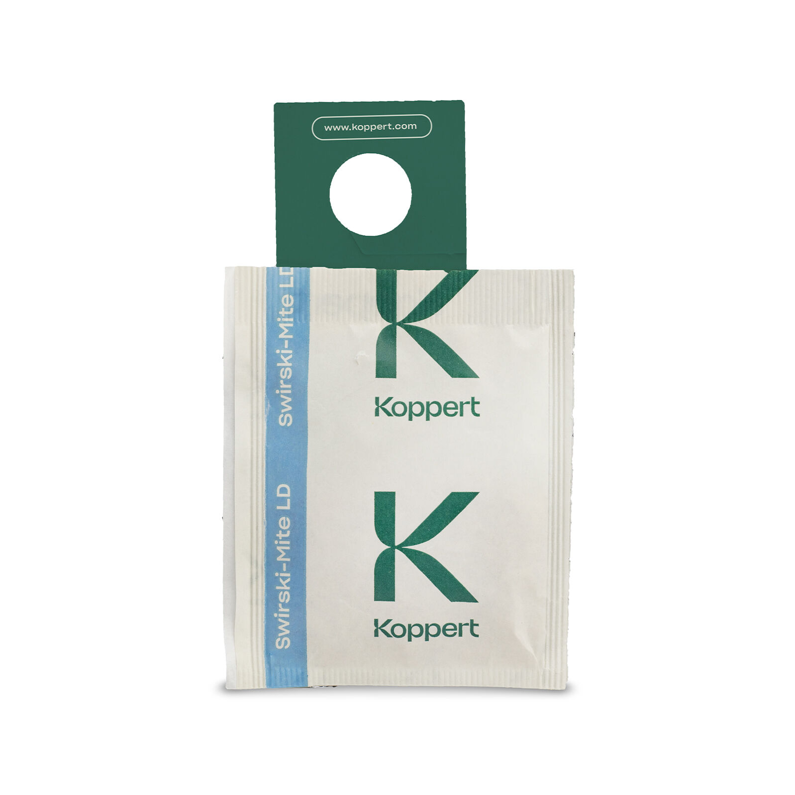 La dosis de Swirski-Mite LD depende del clima, el cultivo y la densidad de la plaga y siempre se debe adaptar a la situación concreta. Empiece la introducción preventivamente o tan pronto como se detecten los primeros ácaros plaga en el cultivo. Use, como mínimo, 4,000 sobres por hectárea y cuélguelos repartidos uniformemente por el cultivo. Si no se logra controlar la plaga, la liberación se debería repetir tras 5-6 semanas. Si desea asesoramiento sobre la mejor estrategia a seguir en su situación, consulte a un especialista de Koppert o a un distribuidor de productos Koppert autorizado.